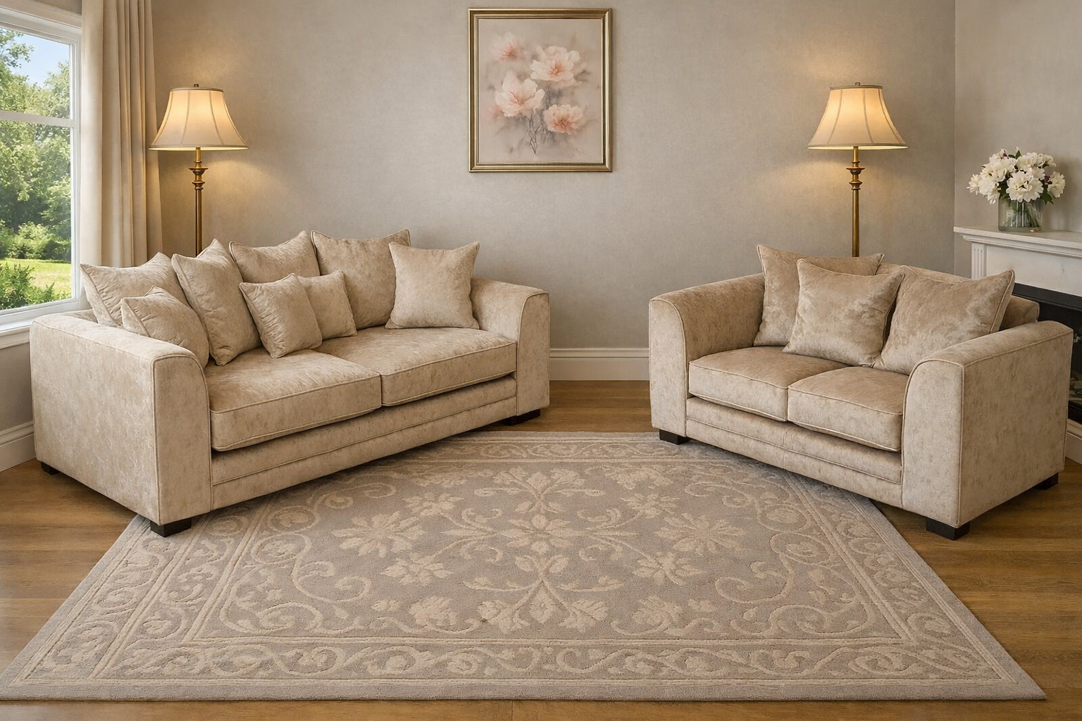 - Cushions: Includes matching scatter back cushions