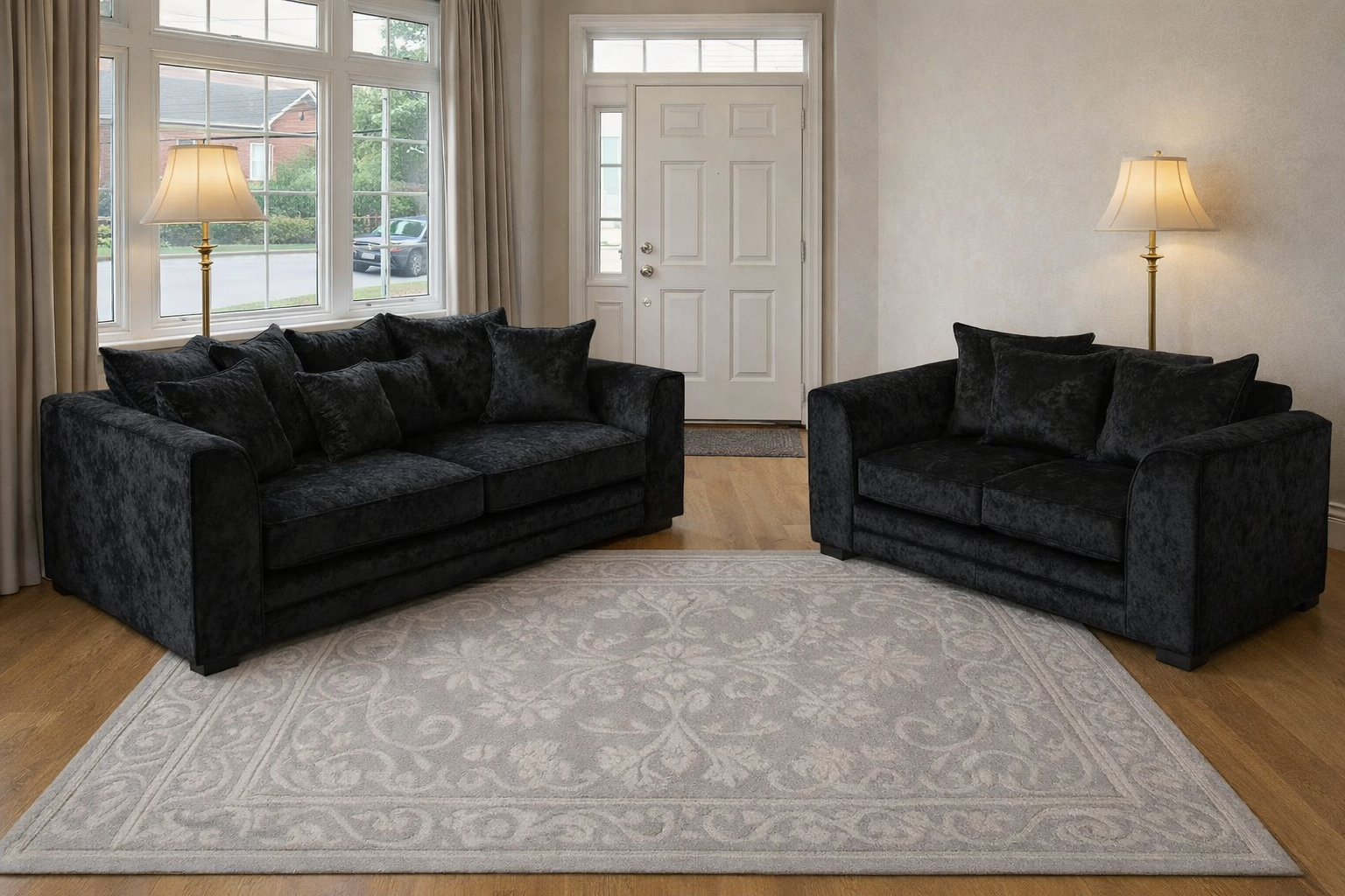 - Upholstery: Soft crushed velvet fabric